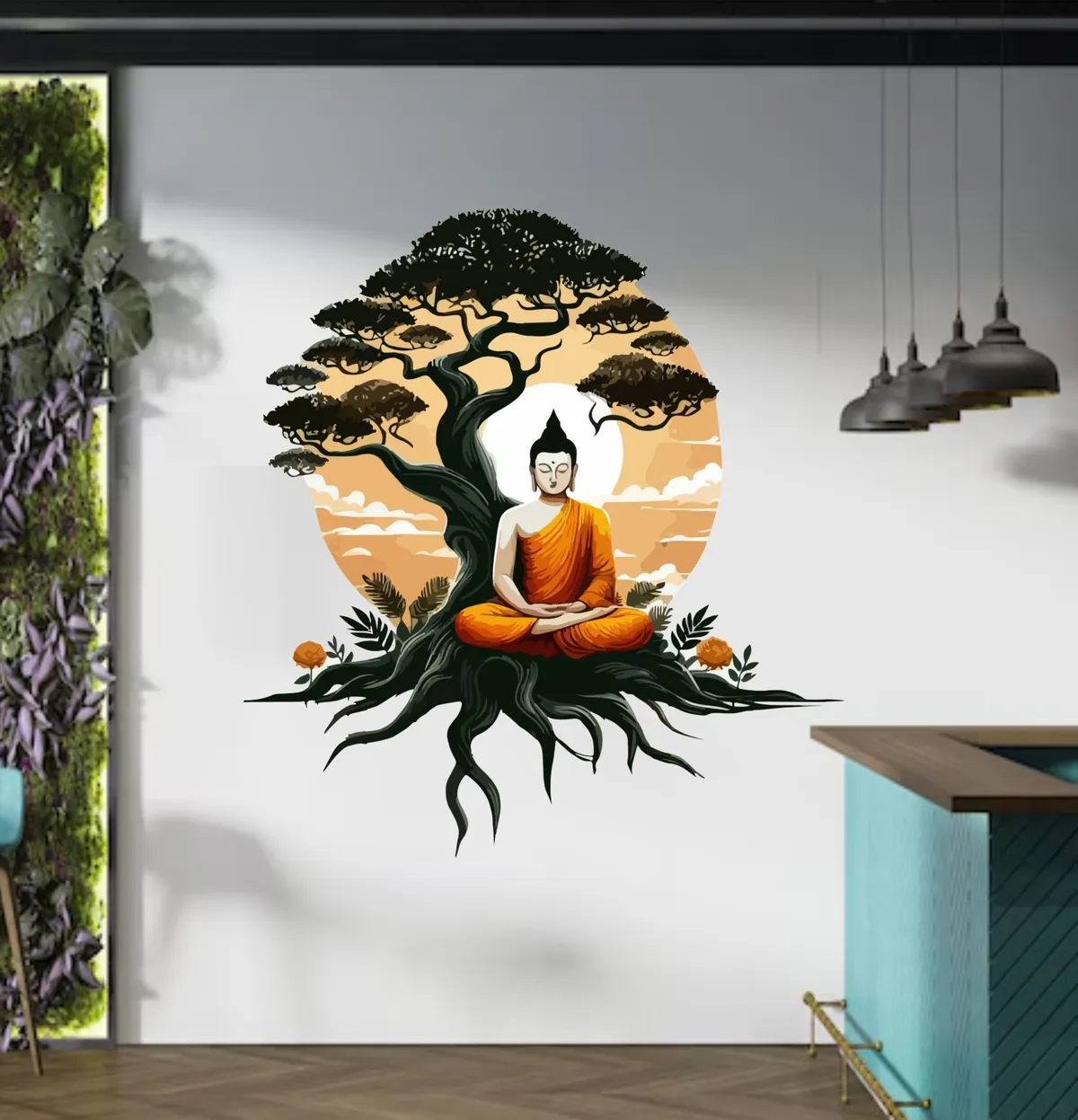 Buddha Sitting Under A Bodhi Tree Printed Self Adhesive Vinyl Wall Sticker | For Home & Bedroom Decoration