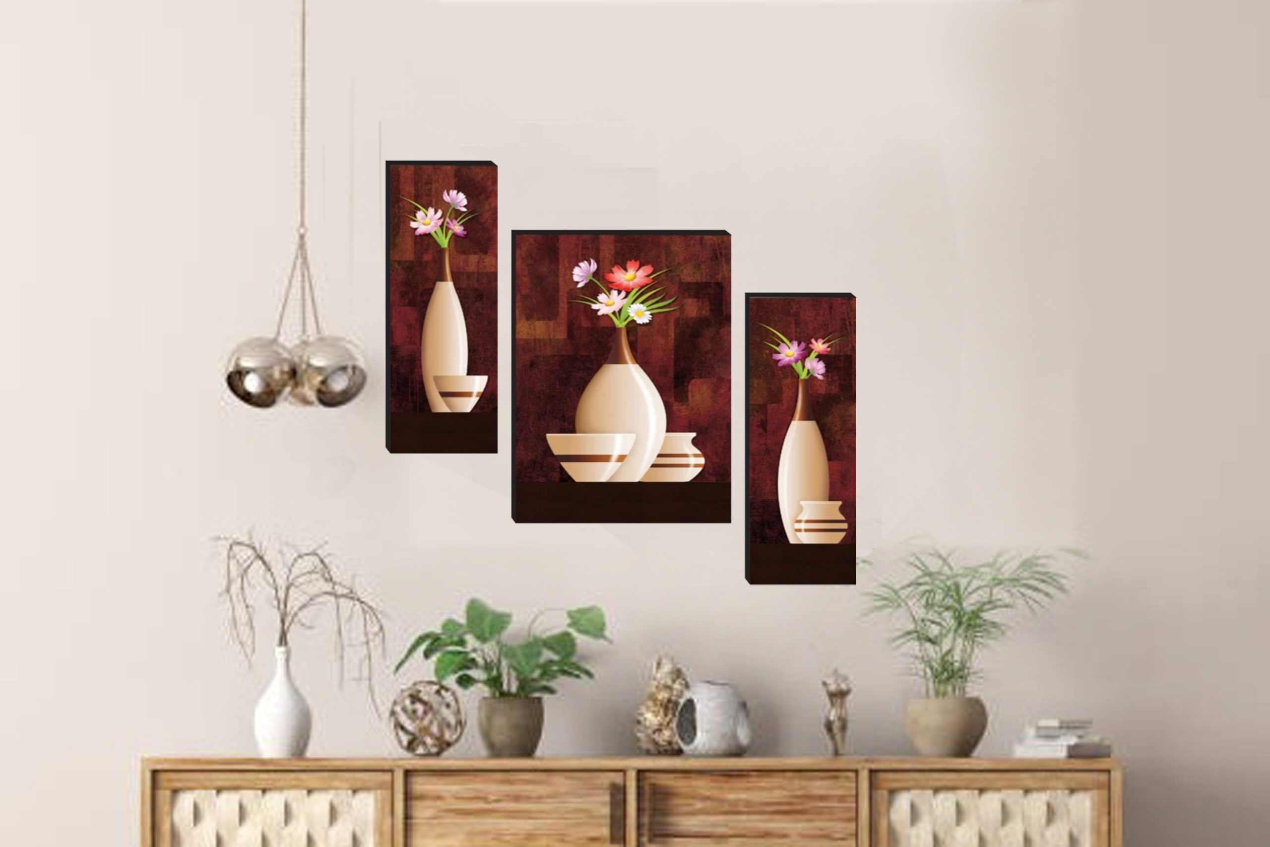Crystalsign Beautiful Pot Set of 3 Wall Painting For Living Room Home Decorated Office Hotel Gift Item 12 Inch * 18 Inch Painting
