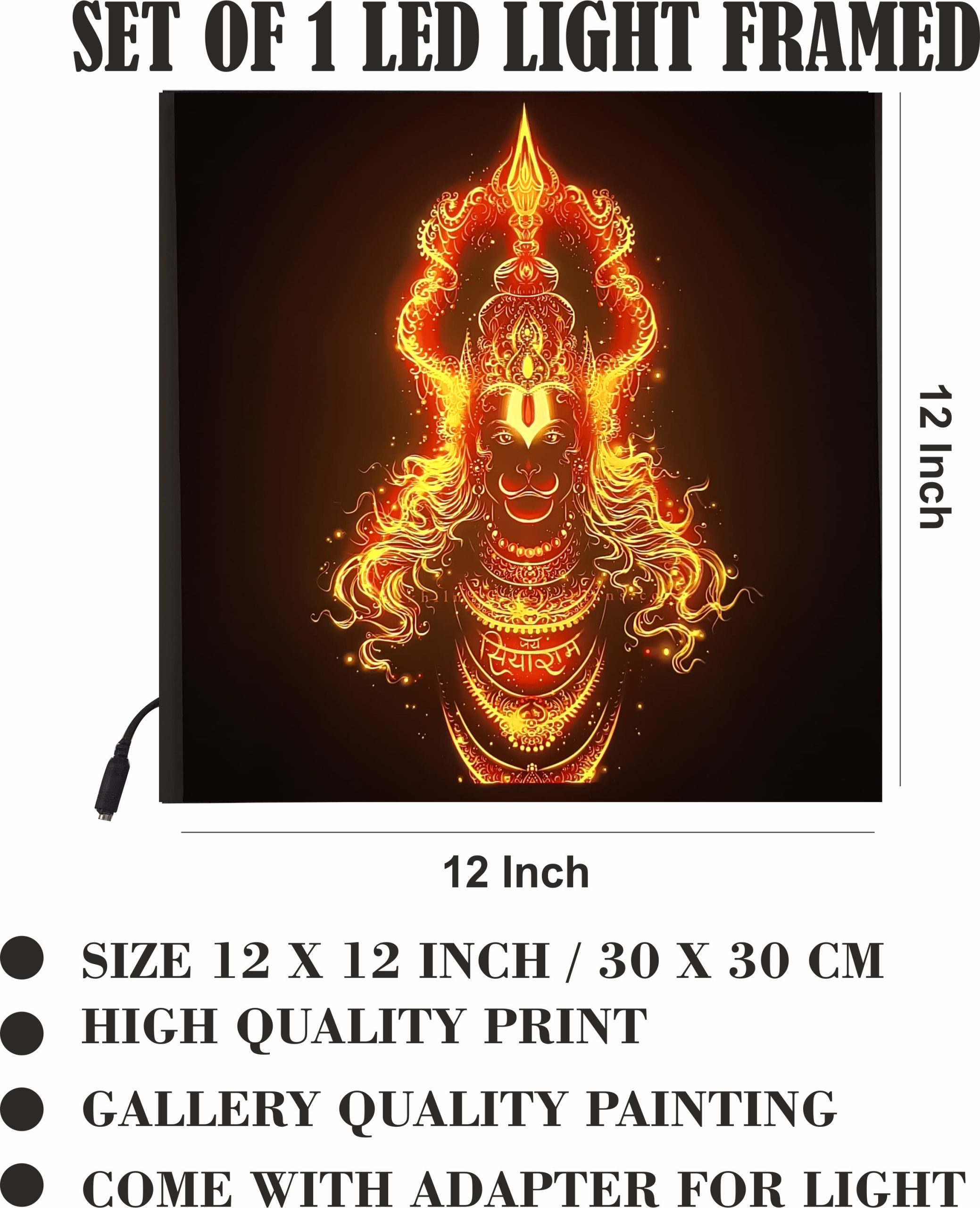 CRYSTALSIGN Beautiful Hanuman Face LED Photo 12x12 Inches For Home Decoration& Gifting