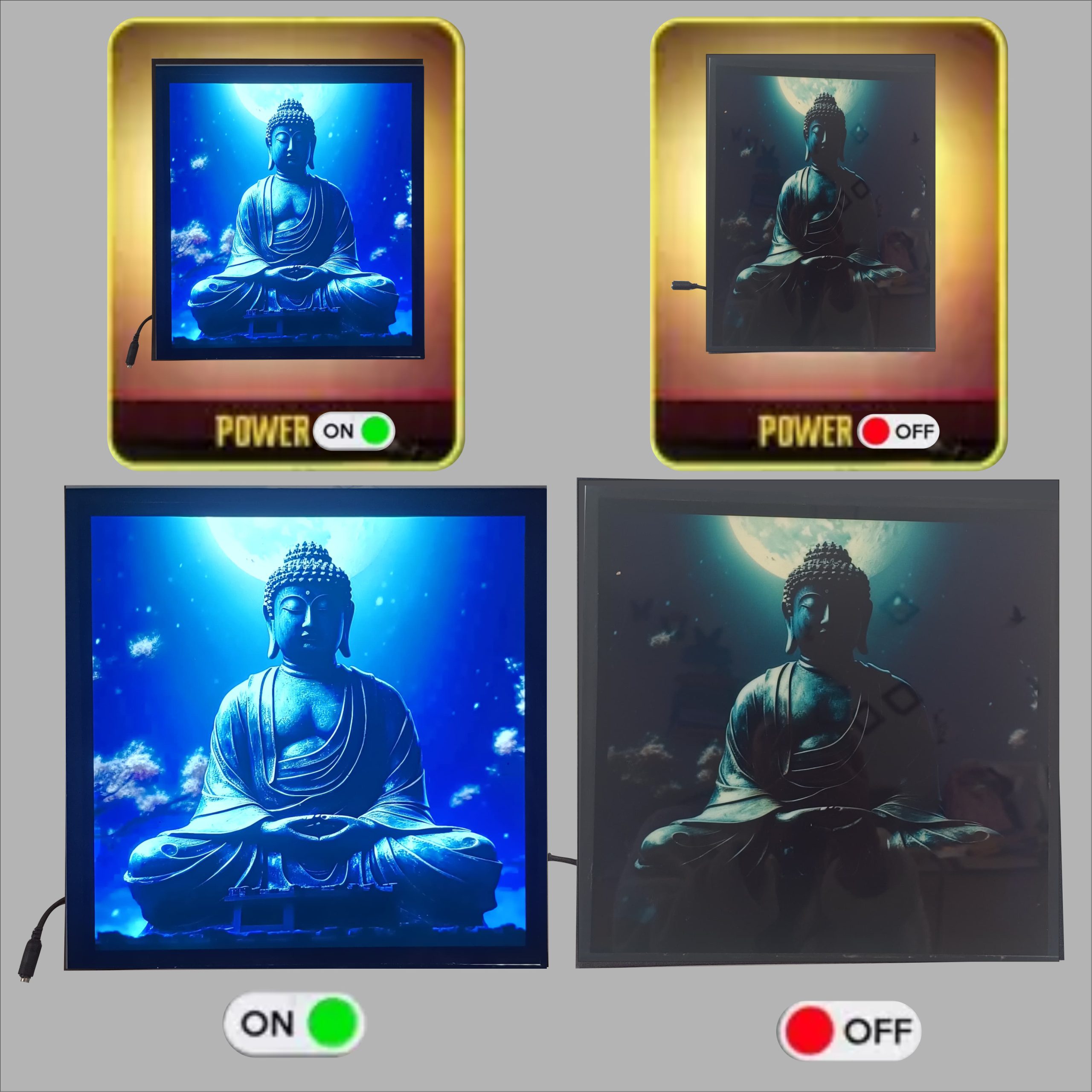 CRYSTALSIGN Lord Buddha in Meditation State LED Photo 12×12 Inches