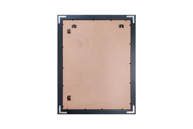 The corner of the frame is held by metal bracket to support. The base is made of MDF wood and the image is protected by acrylic. It has a wall hanging hook for mounting on the wall.
